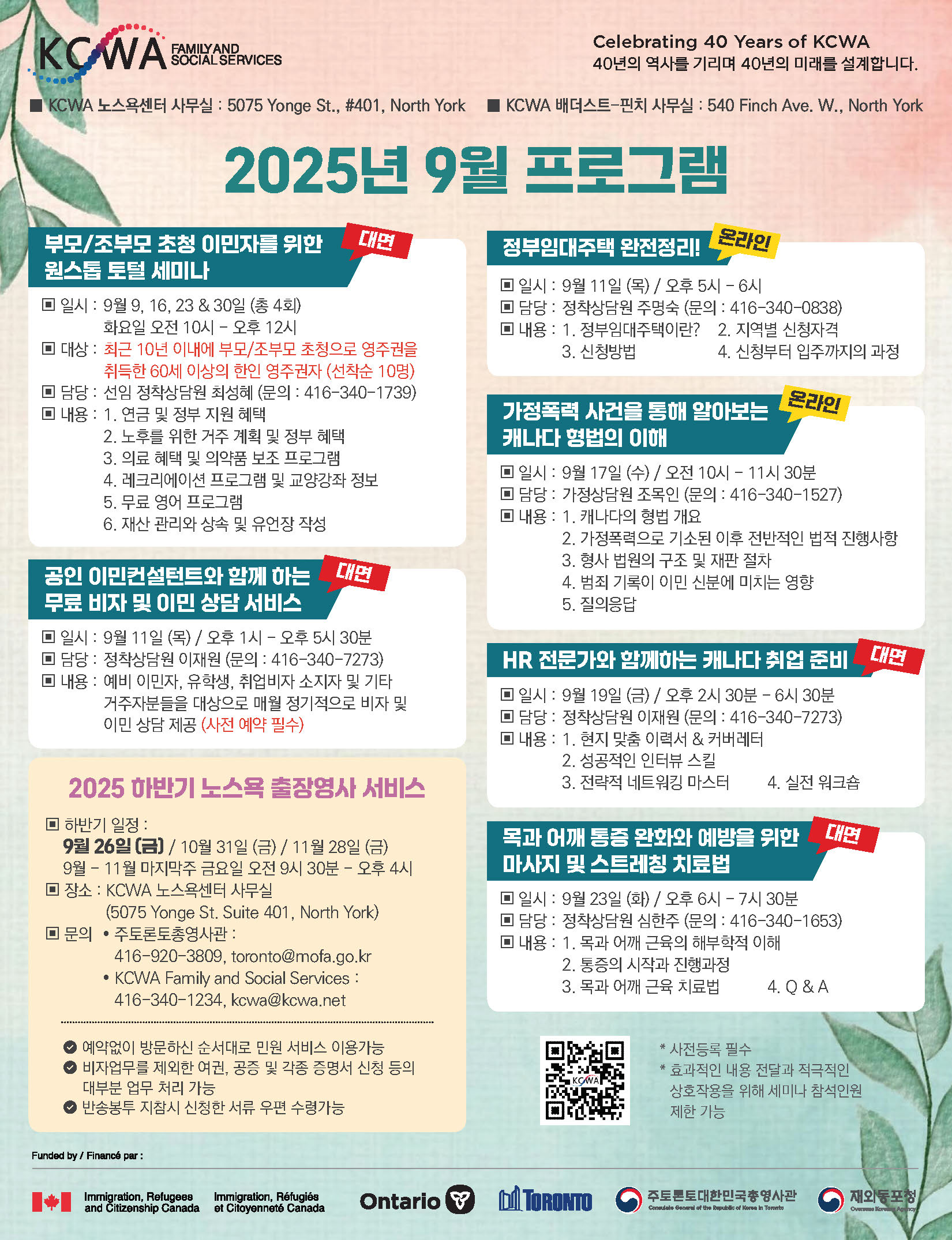 각 세미나와 행사에 대한 자세한 정보는 홈페이지(kcwa.net)에서 보실 수 있습니다.